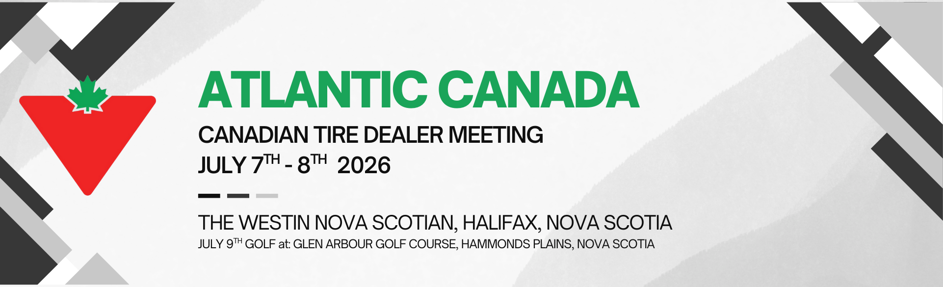 Video: Getting Ready for 2026 at this link. All Canadian Tire Dealers, current or retired, are welcome to the Wednesday, July 8, 2026, Atlantic Jumpstart Wine Paired Dinner and Live Auction, at the Westin Halifax. Thank you for your support and attendance this July 7-9, 2026 in Halifax. Committee Chair, Jeff Levy Committee Members: Cameron Beach, Ryan Jones, Pierre Lauzon, Ron Regnier, and Yahya Altinbas |